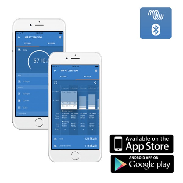 Vgrajen Bluetooth omogoča neposreden nadzor, nastavitev parametrov in diagnostiko sistema preko pametnega telefona ali tablice, VE.Can komunikacija pa omogoča integracijo več regulatorjev v napredne Victron energetske sisteme z osrednjim nadzorom.